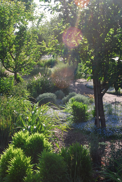 Here in Wine Land , the restaurants stack up. Block after block, highways and back roads-I've visited major cities that don't come close to the dining choices here in our small valley. And many of them have gardens. What could be better ? This morning I dropped by 'Go Fish' in St Helena, 7:30am, hours before opening with the morning sunshine streaking through the plants.